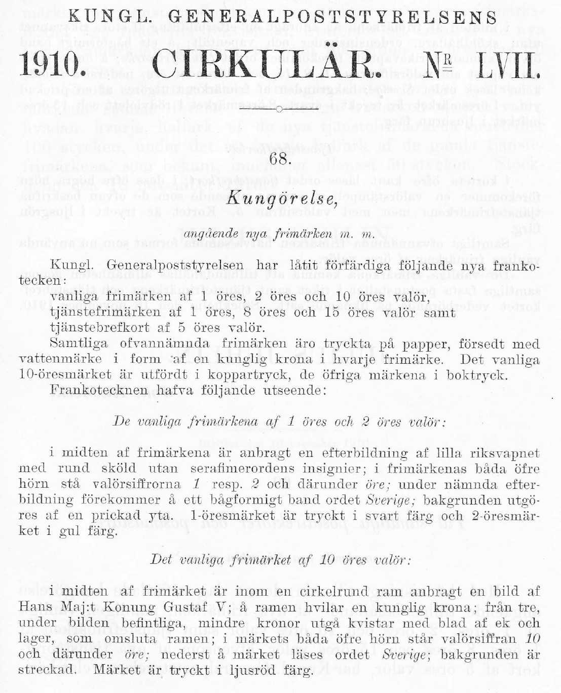 I slutet av 1910 tillkännagavs två emissioner av Postverket, Lilla Riksvapnet och Gustaf V i Medaljong. Det var efter Oscar den II:s död i december 1907 som bl.a. behovet av nya porträttfrimärken uppstod.